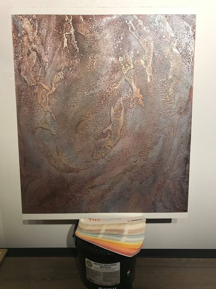 Материалы: Marmorino, Antico Riflesso Sabbiato, Corten, немного фантазии и уютная атмосфера нашего нового салона.